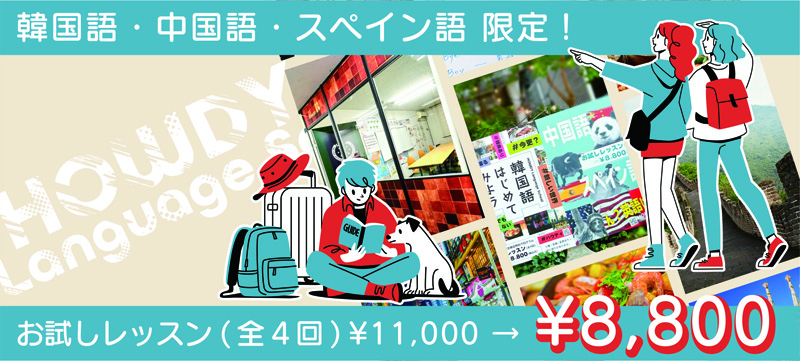 ※ 韓国語・中国語・スペイン語は、お試しレッスンキャンペーン対象です。