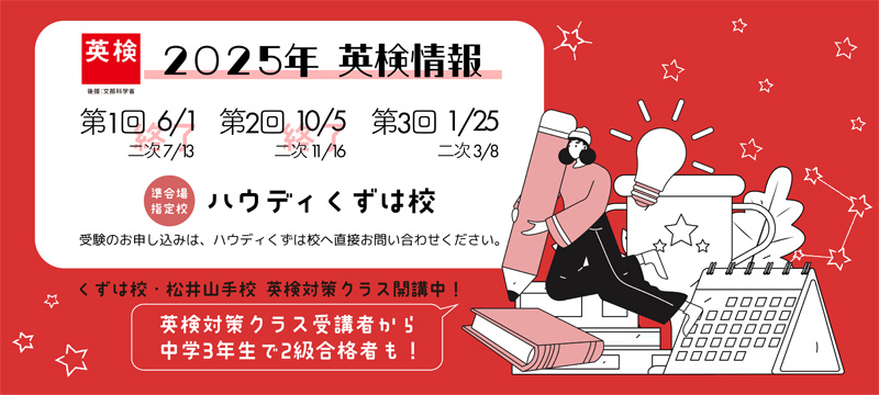現在ハウディに在籍していない「英検受験のみ」ご希望の方を、在籍生のお席を確保後の空いている枠で受け入れております。